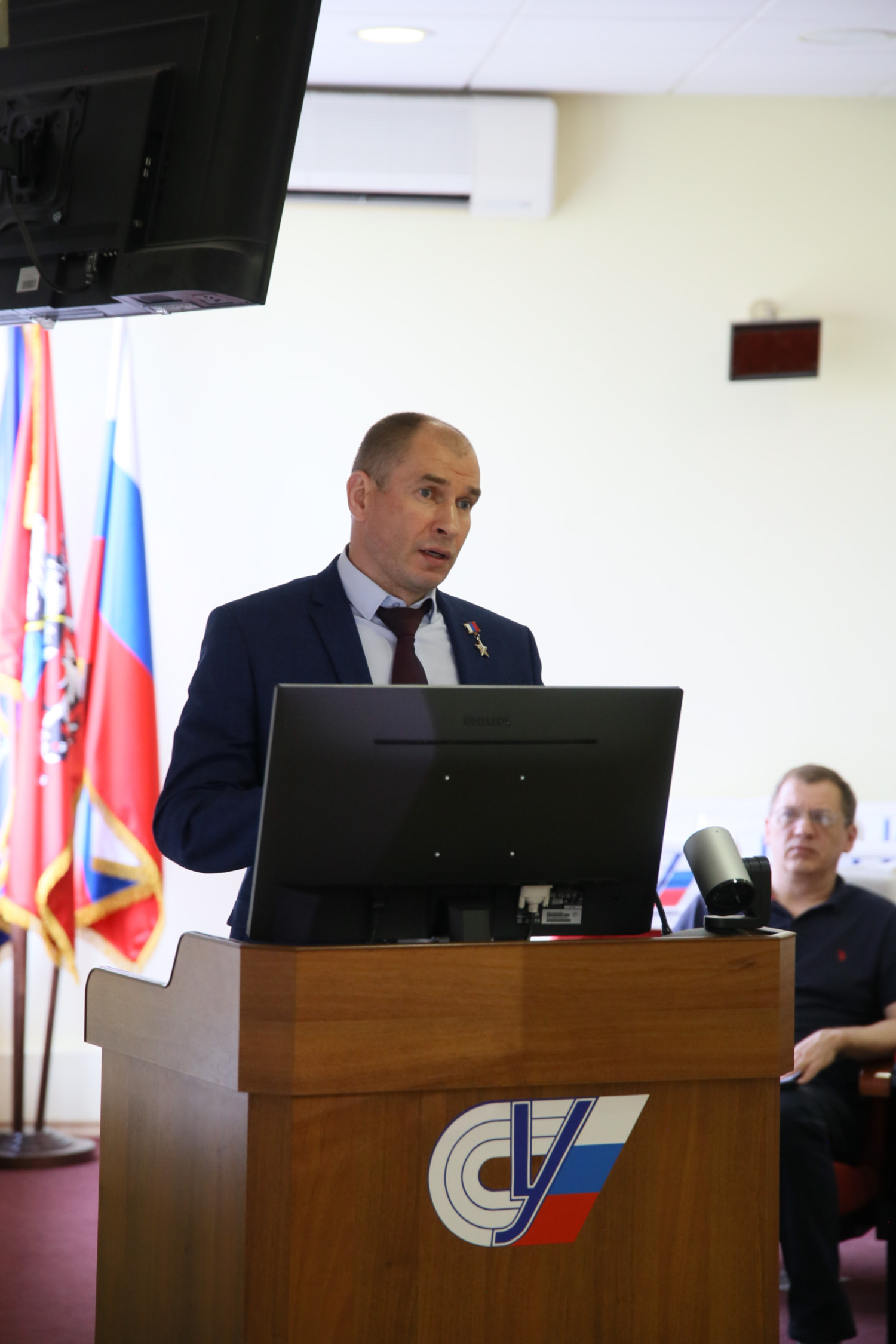 - Андрей Вадимович Смоленский, заведующий кафедрой спортивной медицины. Тема выступления: Создание доступной и здоровьесберегающей среды для участников СВО и членов их семей; Восстановление долгосрочного качества жизни, связанного со здоровьем участников СВО, получивших легкие или тяжелые ранения; Развитие программы психологического сопровождение участников СВО и членов их семей; Вовлечение к занятиям адаптивным спортом участников СВО; освоение новых профессий участниками СВО и членами их семей, трудоустройство; Проект создания и развития «Ресурсного центра абилитации, ресоциализации и охраны здоровья ветеранов СВО, членов их семей» на базе Российского университета спорта «ГЦОЛИФК»;