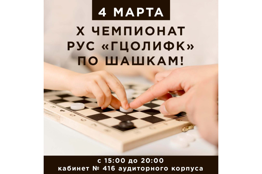 Приглашаем к участию в X чемпионате РУС «ГЦОЛИФК» по шашкам!
